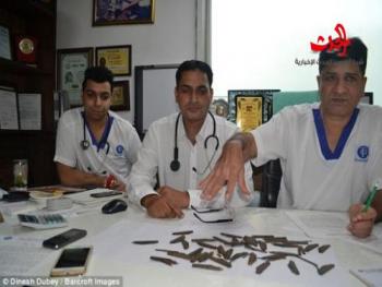 أخرج جراحون في الهند أربعين سكيناً معدنية من معدة مريض كان يعاني من «رغبة منفلتة» في التهام معدات المطبخ. وتلقى المريض العلاج في قسم الطوارئ في مستشفى غورداسبور بولاية البنجاب شمال الهند، بعد أن اشتكى من آلام في البطن.وقد أعرب الجراحون عن دهشتهم عندما اكتشفوا أن المريض ابتلع عشرات السكاكين على مدى الشهرين الماضيين لأنه يحب مذاقها.