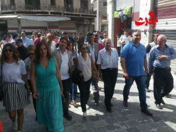 تأكيدا على تماسك الأشقاء اللبنانيين بثوابتهم الوطنية ومن منطلق حبهم لسورية قام وفد إعلامي لبناني من عدة محطات تلفزيونية وتيارات سياسية مختلفة بزيارة مدينة حمص وقد رافق الإعلاميين السوريين زملائهم اللبنانيين في هده الجولة وبرفقة الأستاذ طلال البرازي محافظ حمص , وبدات الجولة من أسواق حمص القديمة وشرح السيد المحافظ واحد المهندسين المشرفين على ترميم السوق عن تاريخ وعراقة الأسواق القديمة وعن المراحل التي سيتم فيها الترميم , وبعد ذلك توجه الجميع إلى مطعم جوليا دومنا واطلعوا على الدمار الحاصل وعلى كيفية الترميم لينتقلوا بعدها إلى مطعم بيت الآغا وقد عبروا جميعهم عن أسفهم لما طال حمص من دمار متمنين عودة الإعمار بأسرع وقت ممكن , لتكون بعدها استراحة في مطعم البستان قبل الإنتقال إلى المركز الثقافي والإلتقاء مع جرحى الحرب من جمعية صامدون رغم الجراح الذين أصروا على الحياة وصنعوا الحياة عبر ابداعاتهم وأشغالهم اليدوية حيث أبدى الوفد الضيف إعجابه الكبير بما شاهدوه • وكانت سورية الحدث قد التقت مع عددا من الإعلاميين الضيوف الذين اكدوا على وقوفهم مع سورية قيادة وشعبا .• الإعلامية سوسن صفا من تلفزيون NBN : قالت باختصار إننا انتصرنا فما نشهده اليوم في حمص من إصرار على الحياة يعطينا كل الامل والتفاؤل بإعادة حمص وكل سورية كما كانت واجمل وباختصار أقول سورية عامود السماء .• الإعلامية زينب عواضة من تلفزيون المنار : أتينا من الجنوب اللبناني الحبيب إلى سورية المقاومة وما تعيشه سورية اليوم عشناه في عدوان 2006 وسننتصر بهمة الرجال الشرفاء • الإعلامي سالم زهران لسورية الحدث : هذه ليست جولة سياحية ولكننا سنشهد على إعادة حمص خضراء كما كانت ونحن سنكون شهودا على قيامة كل سورية , التحية لأرواح الشهداء والشفاء للجرحى وتحيا سورية .• الإعلامية سمر الحاج لسورية الحدث : حمص تقول كلمتها وتتخطى كل من حاول تدميرها وستنتصر حمص في 2016 كما انتصرت المقاومة اللبنانية في 2006 • فيرا نمين رئيسة المكتب السياسي لتيار المردة تقول عبر سورية الحدث : أنا اليوم في حمص ولمست اصرار اهلها على تعميرها حجرا حجرا وسورية لا يمكن ان تدمر لأن اهلها أصيلون فكيف لوطن له منشدون وأغنيات مثل سورية أن لا يبقى . • رامز القاضي مراسل قناة الجديد يقول عبر سورية الحدث : من لا يرقص ويغني فهو قاتل وحمص قالت كلمتها وترسل رسالة الفن من اجل الحياة .• الإعلامي محمد دياب : أقول باختصار سورية انتصرت• هذا والتقت سورية الحدث مع الفنان احمد الزين ( ابن البلد ) وقال بروحه المرحة إننا من حمص نعلن الإنتصار وأوجه رسالتي إلى كل خائن وإلى دول الشر وأقول لهم كفى فسورية انتصرت لأنها على حق . • هذا والتقت سورية الحدث مع العقيد ياسر الشاويش رئيس مجلس إدارة جمعية صامدون رغم الجراح حيث اكد عن سعادته بالوفد الضيف وقال عبر عبر سورية الحدث نحن أردنا ان نخبر ضيوفنا الإعلاميين ان الجريح السوري قادر على العطاء والإستمرار وسورية سنتصر لأنها على حق .• وفي نهاية جولة اليوم الاول كان هناك مسير سيارات في شوارع حمص وقد أبدى الضيوف عن سعادتهم بما شاهدوه من عودة للحياة واستمرار الحياة . مكتب حمص والمنطقة الوسطى أندريه ديب – صفاء الحمود
