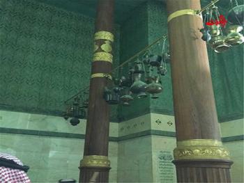 في مساحة لا تتجاوز 180 مترا مربعا، تحوي الكعبة في داخلها أعمدة خشبية ثلاثة تحمل سقف الكعبة المشرفة، وهي من أقوى أنواع الأخشاب التي لا يعرف مثلها، وضعها الصحابي عبد الله بن الزبير، ويصل عمرها إلى أكثر من 1350 عاما، وهي بُنية اللون تميل إلى السواد قليلاً، ومحيط كل عمود منها 150 سم تقريباً، وبقطر 44 سم، ولكل منها قاعدة مربعة خشبية منقوشة بالحفر على الخشب، ويوجد بين الأعمدة الثلاثة مداد معلق فيه بعض هدايا الكعبة المشرفة، ويمتد على الأعمدة الثلاثة حامل يمتد طرفاه إلى داخل الجدارين الشمالي والجنوبي.رئاسة الحرمين قالت لـ""العربية.نت" إن الركن الشامي على يمين الداخل إلى الكعبة المشرفة، يضم بناء الدرج المؤدي إلى السطح، وهو عبارة عن بناء مستطيل شكله كالغرفة المسدودة بدون نوافذ، ولها باب عليه قفل خاص، وعليه ستارة حريرية جميلة مكتوب عليها ومنقوشة بالذهب والفضة.وأضافت الرئاسة أن أرض الكعبة المشرفة مفروشة بالرخام، وأغلبه من النوع الأبيض والباقي ملون، أما جدار الكعبة المشرفة من داخلها فمؤزر برخام ملون ومزركش بنقوش لطيفة، وتغطى الكعبة المشرفة من الداخل بستارة من الحرير الأحمر الوردي مكتوب عليها بالنسيج الأبيض الشهادتان وبعض أسماء الله الحسنى على شكل ثمانية أو سبعة متكررة، وكسي بهذه الستارة سقف الكعبة المشرفة أيضاً.وتوجد داخل الكعبة المشرفة تسعة أحجار من الرخام مكتوبة بخط الثلث بالحفر على الحجر إلا حجراً واحداً مكتوباً بالخط الكوفي البارز، وحروف الكلمات على هذه اللوحة تتكون من قطع من الرخام الملون الثمين، ملصقة بعضها إلى جانب بعض على قاعدة الخط الكوفي المربع، وكل هذه الأحجار مكتوبة بعد القرن السادس للهجرة.