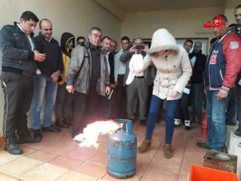 ضمن دورة الدفاع المدني المقامة في منتجع افاميا السياحي للعاملين,اقيم اليوم بيان عملي في الحريق تم فيه تدريب العاملين على التعامل مع اي حالة حريق تحدث وسبل اطفائها ,وقام المتدربين بعمليات اطفاء رغوي وسائل بأشراف سامر محفوض ومضر احمد من الدفاع المدني باللاذقية.
