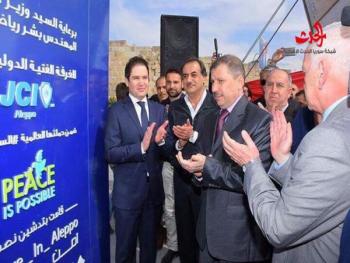حلب - فارس نجيب آغاإعتبر وزير السياحة المهندس بشر يازجي أن الاحتفال بإزاحة الستار أمام قلعة حلب عن النصب التذكاري آمن بحلب هو رسالة للعالم بأجمعه بأن سورية التاريخ والحضارة والإنسانية كانت وستبقى على الدوام منيعة على أعدائها وصامدة وقوية بشعبها وشبابها وبتضحيات أبطال جيشها العربي السوري خلف القيادة الحكيمة والشجاعة للسيد الرئيس بشار الأسد .مبينا دور الشباب السوري منذ بداية عام 2011 عندما اجتمعوا ووضعوا أكبر علم على سفح القلعة ايمانا منهم بوحدة سورية وبالنصر على أعدائها ، وها هم اليوم الشباب يؤكدون مجددا من خلال هذا العمل المميز للغرفة الفتية على إرادة الحياة وثقافة المحبة والسلام وأن سورية قادرة على النهوض مجددا بسواعد أبنائها الشرفاء منوها إلى أهمية هذه المبادرات المحلية التي تشكل لبنة في مسيرة إعادة حلب أفضل مما كانت، وهي دعوة لجميع الشباب السوري للمشاركة في عملية الاعمار.من جانبه أوضح الرفيق القاضي فاضل نجارأمين فرع حلب لحزب البعث العربي الاشتراكي أن هذه المبادرات الشبابية تسهم في تحصين الوطن ضد أعدائه ، وللشباب دور هام وأساسي في المرحلة القادمة وعلى كافة المستويات خاصة فيما يتعلق بشراكتهم في عملية الاعمار والبناء والتسلح بالعلم والمعرفة لمواجهة مستقبلا كل مشاريع التآمر ضد هذا الوطن.هذا وقد شارك في إزاحة الستار عن النصب التذكاري محافظ حلب السيد حسين دياب والرفاق أمين فرع حزب البعث العربي الاشتراكي الرفيق فاضل نجار وأمين فرع جامعة حلب للحزب الدكتور محمد نايف السلتي وقائد شرطة المحافظة اللواء عصام الشلي ورئيس جامعة حلب الدكتور مصطفى أفيوني والدكتور عبد القادر دملخي وعبدالله حنيش عضوا قيادة فرع حلب للحزب والمهندس محمد أيمن حلاق رئيس مجلس المدينة ورجال الدين وحشد من الفعاليات الاقتصادية بحلب.
