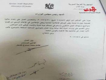 أعلنت منظمة "مراسلون بلا حدود" في تقرير نشرته في شهر نيسان الماضي، أن سوريا تحتل المركز 177 من أصل 180 دولة في التصنيف العالمي لحرية الصحافة لعام 2017.وكانت صفحات سورية على مواقع التواصل الاجتماعي كشفت ، عن وثيقة رسمية لمراسلة بين وزير العدل هشام الشعار ورئاسة مجلس الوزراء، يطالب من خلاله بإعداد مذكرات تفصيلية حول الصحافيين الذين "يستهدفون العمل الحكومي وينالون من هيبة الدولة ليصار إلى محاسبتهم قانونياً"، ما أثار موجة غضب وسخرية بين السوريين.وجاء في الكتاب المسرب، "جواباً على كتابكم ذي الرقم 1/4856، و المتضمن العمل على إعداد مذكرة تفصيلية حول ما تتناوله بعض الوسائل الإعلامية الخاصة وبعض الإعلاميين في الإعلام الرسمي من قضايا ومواضيع تستهدف العمل الحكومي وتساهم في إضعاف هيبة الدولة والانتماء الوطني لدى المواطنين".وطالب الوزير في الكتاب الصادر في الخامس من شهر أيار الحالي، رئاسة مجلس الوزراء بـ"التعميم على وزارات الدولة كافة وموافاة وزارة العدل بالمواضيع الصحفية المتعلقة بالموضوع الآنف ذكره، ليصار إلى معالجتها وفقاً لأنظمة والقوانين النافذة".وأثار الكتاب موجة نقد وسخرية بين السوريين على مواقع التواصل الاجتماعي، خصوصاً من قبل العاملين في وسائل إعلام سورية خاصة ورسمية، حيث اعتبروا الكتاب تقييداً جديداً لحرية الصحافة، وتهمة جاهزة لمعاقبة كل من ينتقد عمل الحكومة.وفي تصريح سابق لرئيس الجمهورية الدكتور بشار الأسد قال فيه، إنه "يحق لأي شخص أن يعارض الحكومة وسياستها ويطالب بتبديلها، لكن لا أحد يستطيع أن يبدل الدول لأنها حاجة للجميع".وزير الإعلام محمد رامز ترجمان، قال في تصريح لـ "شام اف إم"، بالقول: "هناك الكثير من اللغط في فهم الكتاب الصادر عن وزارة العدل وليس المقصود هو مجابهة الإعلاميين، والمقصود فيه من يتخطى حدود العمل الصحفي والتعدي على حرية الأخرين والإساءة، ومن هنا جاء دور القضاء في التدخل لدرء الأخطار الناتجة عن الصحافة".وأضاف ترجمان، أن "وزارة الإعلام هي خط الدفاع الأول عن الصحفيين والعمل الصحفي.. بما يكفله الدستور، وعلى الإعلام أن يضيء على أماكن الخلل والفساد، ولن نسمح لأحد أن يحد من حرية الإعلام".ونقل رئيس الاتحاد موسى عبد النور عن وزير العدل قوله خلال لقائه معه أمس، إنه "من حق.. بل من واجب الإعلامي الإشارة إلى مواطن الخلل والأمور السلبية في عمل الحكومة ككل إن وجدت أو أحد أعضائها ولا رقيب عليه في ذلك سوى ضميره المهني كما أن من حقه أن يطالب بتغيير الحكومة أو تعديلها".وأشار وزير العدل، إلى أنه "كان وسيبقى على علاقة وطيدة ومميزة بكل وسائل الإعلام الوطني السوري الرسمي والخاص في مراحل عمله القضائية قاضياً.. رئيسا للجنة القضائية العليا للانتخابات.. رئيسا لمجلس الدولة.. وأخيراً وزيراً للعدل".وأكد الوزير لرئيس اتحاد الصحفيين، أنه "لن يكون هناك أي قرار يحد من عمل الإعلامي أو يقيد من حركته أو يتضمن تهديداً له"، بحسب ما ذكر الاتحاد على موقعه الرسمي.