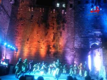 من أمام قلعة الحصن يوم الجمعة 14 تموز كان الإفتتاح الرسمي لمهرجان القلعة والوادي بملحمة وطنية بعنوان «أرض المجد» بمشاركة /400/ شاب وشابة قدمتها فرقة آرام للمسرح الراقص وعدد من أبطال الجيش العربي السوري الذين ساهموا في تحرير قلعة الحصن مهداة إلى السيد الرئيس بشار الأسد والجيش العربي السوري صورت خلالها تاريخ حمص القديم و عهد الملكة جوليا دومنا مرورا بتدمر والملكة زنوبيا وعظمتها والشاعر ديك الجن وقلعة الحصن مستعرضة الإرهاب الأسود الذي عاشته حمص وأهلها والتي انتهت بانتصارات الجيش العربي السوري ونشر الأمان مؤكدين خلالها على الوحدة الوطنية والتعايش المشترك التي لطالما تميزت بها سورية التي ستبقى عصية على المتآمرين والطامعين بأرضها.وأكد وزيرالسياحة بشر يازجي خلال تصريح صحفي بعد انتهاء العرض أنَّه هنا تتجلى سوريتنا في شكلها الأزلي فسورية تعني الجمال بكل تفاصيلها وأنَّنا نقف هنا بين الجغرافيا والتاريخ والطبيعة والشعب الأصيل وبين الحاضر.لافتا أنَّ أهل المنطقة قدموا مثالا للسوريين بل للعالم في الصمود والدفاع.. - وأكد محافظ حمص طلال البرازي في تصريح للإعلاميين أهمية هذا المهرجان منوها أن مهرجانات سورية التي تضم مهرجان القلعة والوادي ومهرجانات الثقافة والسياحة هي مهرجانات الانتصار موجها التحية إلى بواسل الجيش العربي السوري , ولفت البرازي إلى إرادة الشعب السوري في النضال من أجل الحرية حتى تحقيق الانتصار والسلام والاستقرار لأبنائها مؤكدا أنَّ سورية ستبقى تشع حضارة وإنسانية وستبقى قلعة الحصن تعبيراً حقيقياً عن الصمود- كما التقت سورية الحدث مع الأستاذ حسين وسوف مدير سياحة حمص حيث عبر عن أهمية هذا المهرجان برعاية رئيس مجلس الوزراء ومحافظ حمص ووزير السياحة ويعتبر المهرجان رمزا للانتصار ورمزا للمحبة وعودة كل أراضي سورية بهمة أبطال جيشنا وبواسلنا فلولاهم ماكنا مجتمعين الآن في هذا الوادي الجميل , والفعاليات متنوعة تراثية وسياحية وثقافية وأيضا معرضا للتسوق من حيث التدخل الإيجابي للسورية للتجارة لتأمين مستلزمات المستهلكين بأسعار منافسة وأيضا فعالية تراث القرية الذي يقام في قرية قلاطية ويذكرنا بعطاء الأرض وحضارة اجدادنا وأيضا عرض للخيول العربية , ومن هنا من قلعة الصمود التي توحي بقوة وصمود سورية حقق أبطال جيشنا الباسل أعظم الإنتصارات .- حضر حفل الافتتاح وزيري السياحة والتموين ومحافظ حمص وأمين فرع حمص لحزب البعث العربي الاشتراكي تكليفا وأعضاء قيادة فرع الحزب وعدد من أعضاء مجلس الشعب وحشد من الفعاليات الرسمية والأهلية والاقتصادية بالمحافظة. مكتب حمص والمنطقة الوسطى اندريه ديب – مايا عفوف - سهام حداد