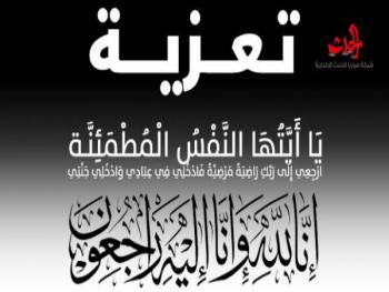 تتقدم أسرة سورية الحدث ورئيس التحرير الإعلامي كمال عبد الله بأحر التعازي من الزميل العزيز ماهر أحمد حليمة برحيل والدتهونسأل الله أن يتغمدها بواسع رحمته و يسكنها فسيح جنانه و إنّ لله و إنّ إليه راجعون بسم الله الرحمن الرحيميا ايتها النفس المطمئنة ارجعي الى ربك راضية مرضية فادخلي في عبادي وادخلي جنتي صدق الله العظيم