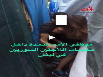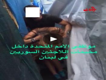 انتشر على وسائل التواصل شريط فيديو يظهر ما قيل انهما موظفون في منظمات انسانية يمارسون الجنس بين خيم اللاجئين في حين يقوم متواطيء مع الشاب بتصوير الفتاة التي اخفت وجهها حين فاجأتها الكاميرا.