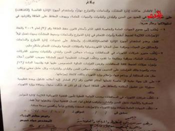أصدرت رئاسة مجلس الوزراء لجميع الجهات العامة بلاغ حمل الرقم 16/15/ب حصلت "سورية الحدث " على نسخه منه جاء فيه نظراً لانتشار حالات إنارة المنشآت والساحات والشوارع نهاراً ، واستخدام أجهزة الإنارة الفائضة (الكشافات) على نظاق واسع في العديد من المدن والبلدان والبلديات والجهات العامة ، وبهدف الحفاظ على الطاقة والترشيد في استهلاكها وعدم هدرها .وطلبت الحكومة من جميع الجهات العامة والخاصة التقيد التام بأحكام قانون حفظ لطاقة رقم /3/ لعام /2009/ واتخاذ الإجراءات اللازمة لضبط أنظمة وأدوات التحكم في إنارة الشوارع والساحات ومحيط المنشآت بحيث تعمل ليلاً فقط ، وعدم استخدام الإنارة الفائضة (الكشافات) ، والحفاظ على تمديدات إنارة الشوارع والساحات والحدائق من العبث ، ومراقبة عمل الخلايا الكهروضوئية والمؤقتات الزمنية ولوحات التحكم بشكل سليم .كما وتم تكليف مديرو شركات الكهرباء في المحافظات ورؤوساء مجالس المدن والبلدان والبلديات ومديرو الشركات والمنشآت العامة ، بمراقبة ومتابعة ما تقدم ، وتكلّف الوحدات التنظيمية لديهم المشكّلة بموجب القانون أعلاه بإجراء جولات لضبط كافة المخالفات ، وفرض الغرامات المالية المنصوص عليها فيه ولا سيما المادة /13/ منه ، والعودة بتلك الغرامات على المديرين ورؤساء مجالس المدن والبلديات ، وكل عامل معني يرتكب مثل هذه المخالفة أو يساهم فيها ، وإعلام وزارة الكهرباء بذلك لاتخاذ إجراءاتها.وأكدت رئاسة مجلس الوزراء على كل جهة عامة أو خاصة تشملها أحكام القانون رقم /3/ لعام 2009 المشار إليه أعلاه ، تشكيل وحدة تنظيمية مسؤولة عن تطبيق أحكامه والحفاظ على الطاقة لديها ، إن لم تكن قد شُكّلت سابقاً ، وموافاة وزارة الكهرباء بذلك.وكلفت الحكومة شركات الكهرباء في المحافظات وحسب الحاجة الفعلية تأمين التغذية الكهربائية اللازمة لإنارة الحواجز العسكرية والأمنية ، داخل المدن والبلدان ، وتركيب قواطع لها ، لفصل التغذية نهاراً وتشغيلها ليلاً فقط.و تُكلَّف الجهات العامة بموافاة وزارة الكهرباء بالإجراءات المتخذة والنتائج تباعاً وبأقصى سرعة ممكنة.