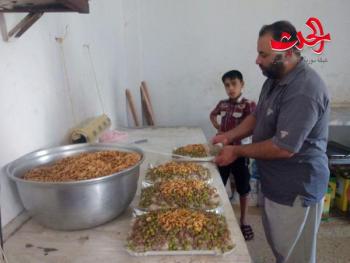 درعا...هيثم العلي اطلقت جمعية البر للخدمات الاجتماعية مشروع إفطار الصائم منذ بداية شهر رمضان الفضيل ويتضمن تقديم وجبات الإفطار للأسر المحتاجة والمهجرة والارامل تكفي 850 اسرة يوميا.مراسل شبكة سورية الحدث الاخبارية بدرعا زار مكان المشروع والتقى المهندس قاسم مسالمة رئيس مجلس ادارة الجمعية الذي حدثنا عن المشروع بالقول: ضمن حملة “لقمتنا سوا 4” التي أطلقتها وزارة الشؤون الاجتماعية والعمل على مستوى المحافظات, اطلقت جمعية البر للخدمات الاجتماعية مشروع إفطار الصائم ويتضمن تقديم وجبات الإفطار للأسر المحتاجة والمهجرة والارامل ويتم توزع الطعام بشكل دوري على أحياء المدينة والوجبات التي يتم إعدادها تكفي 850 شخصا يوميا.وما يميز المشروع الإقبال من اهالي حوران على التبرع بالمواد الاساسية والأطعمة التي يرتكز عليها المشروع إضافة إلى تطوع الشباب للمساهمة في المشروع.وأضاف ” المسالمة ” أن المادة الرئيسية المتضمنة في الوجبات الغذائية التي تقدمها الحملة هي الأرز واللحم أو الأرز والدجاج حيث يتم إعداد هذه الوجبات ضمن مطعم تم تجهيزه لهذه الحملة وبعدها توزع هذه الوجبات على المناطق المستهدفة.مدير المشروع محمد امين قطيفان قال ايضا عن المشروع : تم تجهيز المطابخ الرمضانية قبل بداية الشهر الفضيل، استعداداً لطبخ وتجهيز الوجبات التي تقدم للفئات المستهدفة ، ويعمل فريق على توزيع هذه الوجبات على المحتاجين وهذا المشروع انطلق العام الماضي ويستكمل في هذا العام ويشارك فيه 60 متطوعا.