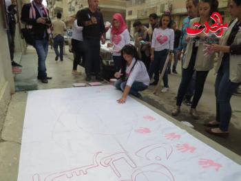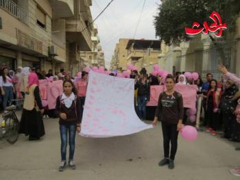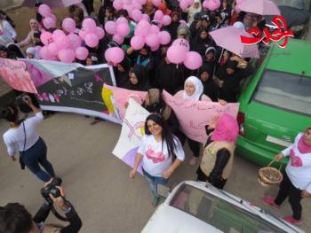 مراسل المنطقة الشرقية مسير في مدينة القامشلي دعما لحملة الكشف المبكر لسرطان الثدي الحسكة شارك العشرات من أبناء مدينة القامشلي في المسير التي أقامته مديرية الشؤون الاجتماعية والعمل اليوم الجمعية السورية للتنمية الاجتماعية "مركزبيت الكل"بالتعاون مع المفوضية السامية لشؤون اللاجئين بعنوان /خليكي أقوى من السرطان / دعما لحملة الكشف المبكر عن سرطان الثدي حيث جال المشاركون في عدد من الشوارع الرئيسية بالمدينة . وأشار مدير الشؤون الاجتماعية عصام الحسين إلى أن المديرية وبالتعاون مع عدد من الجمعيات الخيرية نفذت منذ بداية الشهر الحالي مجموعة من نشاطات التوعية للكشف المبكر عن سرطان الثدي ومنه هذا المسير الذي يشارك فيه العشرات من النساء لنشر ثقافة الوعي الصحي وأهمية إجراء الكشف الذاتي والصحي الدوري للنساء بهدف الحفاظ على صحتهن . وقالت منسقة الجمعية السورية للتنمية الاجتماعية سوزان حسين ..شاركنا اليوم في المسير لدعم كل سيدة وفتاة لكي تكون قوية وواثقة من نفسها ولديها الدافع الذاتي لإجراء الفحص والكشف عن المرض الذي زادت نسبته خلال السنوات الماضية . وأشارت المشاركة في المسير سهام الأحمد إلى أن المشاركين أرادوا إيصال رسالة أن المرأة السورية أقوى من مرض السرطان ولديها الوعي والإرادة للقيام بإجراء الفحص الدوري للكشف على سرطان الثدي. وأكدت المشاركة ريمة الطعان أن مشاركتها الطوعية في مسير اليوم جاء للتضامن مع حملة الكشف المبكر عن سرطان الثدي وأهمية توعية الأهالي ضمن مركز مدينة القامشلي بضرورة تشجيع النساء على إجراء الفحص الذاتي أو الطبي للكشف عن المرض.