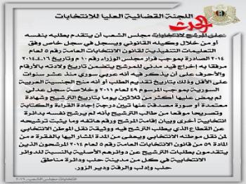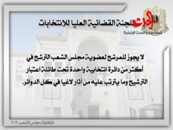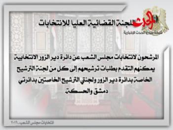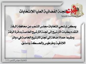 الجمهورية العربية السورية القانون رقم (5)قانون الانتخابات العامةالفصل الأولالتعاريف والأهداف والحقوق الانتخابيةالمادة(1)يقصد بالتعابير الآتية في معرض تطبيق أحكام هذا القانون المعنى المبين إزاء كل منها:القانون:  قانون الانتخابات العامة.الانتخاب: ممارسة الناخب حقه في انتخاب رئيس الجمهورية وممثليه في مجلس الشعب ومجالس الإدارة المحلية.الاستفتاء: أخذ رأي الناخبين عند إحالة أي مسألة تتعلق بالمصلحة الوطنية العليا وفقا لأحكام المادة 116 من الدستور.اللجنة العليا: اللجنة القضائية العليا للانتخابات.اللجنة الفرعية: اللجنة القضائية التي تعمل بإشراف اللجنة العليا للانتخابات.لجنة الترشيح: اللجنة القضائية التي تبت في قانونية طلبات الترشيح.لجنة الانتخاب: اللجنة التي تتولى إدارة الانتخاب في المركز الانتخابي.المركز الانتخابي: المكان الذي يمارس فيه الناخب حقوقه الانتخابية في اختيار ممثليه أو إبداء رأيه في الاستفتاء وتباشر فيه لجنة الانتخاب عملها.الدائرة الانتخابية: الحيز الجغرافي الذي يضم الناخبين والمخصص له عدد محدد من المقاعد.الرئيس الإداري: المحافظ أو مدير المنطقة أو مدير الناحية.الناخب: كل مواطن يتمتع بالحقوق الانتخابية.المقترع: كل ناخب مارس حقه في الانتخاب أو الاستفتاء.المرشح: كل مواطن يرغب بترشيح نفسه لمنصب رئيس الجمهورية أو عضوية مجلس الشعب أو عضوية مجالس الإدارة المحلية.الموطن الانتخابي: مكان القيد المدني للناخب أو المرشح.العامل: كل من يعمل في إحدى الجهات العامة أو في القطاع الخاص أو المشترك لقاء أجر أو منتسب للتنظيم النقابي العمالي ولا يملك سجلا تجاريا أو صناعيا.الفلاح: كل من يعمل في الأرض بمفرده أو بالاشتراك مع غيره أو منتسب للتنظيم الفلاحي وتكون الزراعة بشقيها النباتي والحيواني مصدر رزقه الأساسي ولا يملك سجلا تجاريا أو صناعيا إلا للإنتاج الزراعي.المادة(2)يهدف هذا القانون إلى:أ/ تنظيم انتخاب رئيس الجمهورية.ب/ تنظيم انتخاب أعضاء مجلس الشعب.ج/تنظيم انتخاب أعضاء مجالس الإدارة المحلية.د/تنظيم الاستفتاء الشعبي.ه/ ضمان حق الناخبين باختيار ممثليهم بحرية وسلامة العمليات الانتخابية ونزاهتها وحق المرشحين في مراقبتها وعقاب العابثين بإرادتهم.و/ تحديد ضوابط تمويل العمليات الانتخابية وتنظيمها.ز/تنظيم الدعاية الانتخابية.المادة(3)أ/ الانتخاب والاستفتاء حق لكل مواطن وواجب عليه متى توفرت فيه الشروط المنصوص عليها في هذا القانون لممارسته وذلك بغض النظر عن دينه أو رأيه أو انتمائه السياسي.ب/ يمارس حق الانتخاب أو الاستفتاء بالاقتراع العام والسري والمباشر والمتساوي بصورة حرة وفردية ولا يجوز ممارسة هذا الحق بالوكالة.المادة(4)يتمتع بحق الانتخاب أو الاستفتاء كل مواطن أتم الثامنة عشرة من عمره ما لم يكن محروما من هذا الحق أو موقوفا عنه وفقا لأحكام هذا القانون.المادة(5)يحرم من حق الانتخاب أو الاستفتاء:أ/المحجور عليه طيلة مدة الحجر.ب/ المصاب بمرض عقلي مؤثر في أهليته طيلة مدة مرضه.ج/المحكوم عليه بجناية أو جنحة شائنة أو مخلة بالثقة العامة بمقتضى حكم مبرم ما لم يرد إليه اعتباره وفقا للقانون وتحدد الجنح الشائنة والمخلة بالثقة العامة بقرار من وزير العدل.المادة(6)يوقف حق الانتخاب والترشح لعضوية مجلس الشعب أو عضوية مجالس الإدارة المحلية عن عسكريي الجيش وقوى الأمن الداخلي طيلة وجودهم في الخدمة.المادة(7)يجوز للناخبين المكفوفين وغيرهم من ذوي الاعاقة الذين لا يستطيعون أن يثبتوا آراءهم بأنفسهم على ورقة الانتخاب أن يعهدوا إلى من يحضر معهم أمام لجنة الانتخاب بتدوين الرأي الذي يبدونه على ورقة الانتخاب أو أن يبدوا الرأي مشافهة بحيث يسمعهم أعضاء لجنة الانتخاب وفي الحالتين يثبت رئيس اللجنة هذه الانابة في المحضر.الفصل الثانياللجنة القضائية العليا للانتخابات ولجانهاالمادة(8)أ/تشكل لجنة قضائية تسمى “اللجنة القضائية العليا للانتخابات” مقرها دمشق تتولى إدارة الانتخابات والاستفتاء والإشرا