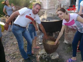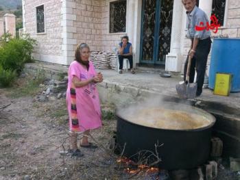 سورية الحدث يعتبر سلق القمح من التراثيات التي لا زالت قرية قلاطية في الريف الغربي لحمص تحتفظ بهذا التقليد السنوي حيث يجتمع ألاقارب والأصدقاء لمساعدة بعضهم أثناء سلق القمح ورفعه إلى سطح المنزل ولمعرفة كيفية طريق سلق القمح التقت سورية الحدث السيد سليم ديب أبو جورج الذي اخبرنا عن طريقة سلق القمح حيث بالبداية ناتي بالقمح ويتم تنقيته من الشوائب وبعدها ناتي ب ( الحلة ) وهي الوعاء الكبير المخصص لوضع القمحويوضع القمح في داخل الحلة ونغمر القمح بالماء ونشعل الحطب تحته حتى ينضج تماما وبعد ذلك نأتي ب ( القفة) المخصصة لوضع القمح المسلوق من أجل رفعه إلى السطح ويتعاون الجميع في العمل وبعد ذلك يتم فرده على السطح ليكون بطبقة رقيقة تحت أشعة الشمس ويتم تحريكه كل عدة ساعات ولعدة أيام وبعد ذلك يتم تنقيته مرة جديدة من الشوائب المتبقية قبل ارساله إلى الجاروش ليتم تحويله إلى مادة البرغلمن جهتها أوضحت السيدة أم جورج والسيدة أم إياد أن هذا التقليد السنوي يعبر عن الخير والمحبة فحبة القمح باركها الله وأيضا يتناول الجميع الحنطة المسلوقة مع السكر أو الدبس وكل عام والجميع بالف خير مكتب حمص والمنطقة الوسطى أندريه ديب - روجيه ديب