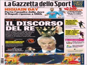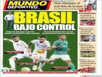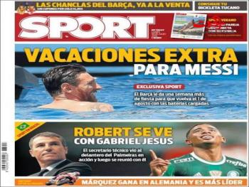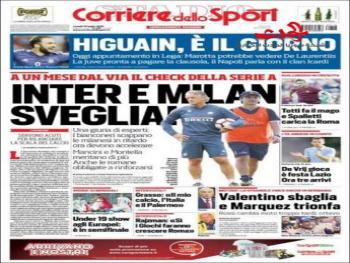 سوريا الحدث - محمد الخطيب 1-صحيفة sun sport البريطانية :محاولة سرقة منزل مورينيو 2-صحيفة corriere dell sport الإيطالية :أنتر وميلان استيقظوا 3-صحيفة tutto sport الإيطالية :الأخوة في الأهداف هيغوايين وديبالا 4-صحيفة لاجازيتا الإيطالية :كلاوديو رانييري خطاب الملك 5-صحيفة marcaالإسبانية :لم يتبقى لأندري غوميز سوى الكشف الطبي 6-صحيفة sport الإسبانية:ميسي يحصل على إجازة إضافية 7-صحيفة mundo deportivo الإسبانية :البرازيل تحت السيطرة 8-صحيفة asالإسبانية :ريال مدريد يطالب بوغبا بالصبر