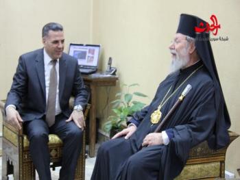 سورية الحدث إحداث مدرسة سورية تدرس المناهج السورية في قبرص كان محور لقاء الدكتور هزوان الوز وزير التربية مع صاحب النيافة كريسوستوموس الثاني رئيس أساقفة قبرص؛ حيث أوضح وزير التربية حرص الجمهورية العربية السورية على مستقبل كل طفل سوري داخل الأراضي السورية وخارجها ولاسيما في قبرص بسبب وجود الجالية السورية، إضافة إلى تزايد أعداد السوريين بعد الأزمة، وتقديم الدعم اللازم لإحداث هذه المدرسة، والتي من شأنها تعزيز علاقات صداقة متميزة ما بين البلدين في مختلف المجالات ولاسيما في المجالات التربوية والثقافية، مبيناً أهمية هذه الزيارة لصاحب النيافة في مثل هذه الأوقات؛ لأنها تجسد رسالة للعالم أجمع أن سورية كانت وستبقى مهداً للديانات والحضارات، ومنبعاً للوحدة الوطنية بين أبنائها بكل فئائها وأطيافها .بدوره أعرب صاحب النيافة كريسوستوموس الثاني عن شكره لحسن استقباله في سورية -البلد المباركة بلد التعايش بين الأديان – وقال: لقد لمست عن كثب في سورية التعاون والمحبة بين الشعب السوري بمختلف فئاته، وأشاد بعلاقات الصداقة ما بين البلدين، مبدياً حرص بلده على متابعة افتتاح المدرسة السورية في قبرص لتكون من أفضل المدارس، مؤكداً مساندة بلده لسورية وشعبها ليعود السلام إليها .