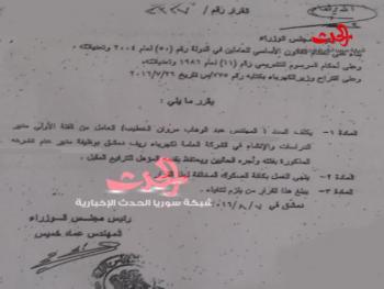 خاص - سورية الحدث أصدر رئيس مجلس الوزراء المهندس عماد خميس قراراُ حصلت "سورية الحدث " على نسخه منه كلف بموجبه المهندس عبد الوهاب مروان الخطيب بوظيفة مدير عام لشركة كهرباء ريف دمشق .وكان يشغل المهندس عبد الوهاب مدير الدراسات والإنشاء في نفس الشركة بريف دمشق وجاء تعيين المهندس الخطيب خلفاً للمهندس زهير خربوطلي الذي عين وزير للكهرباء في حكومة المهندس عماد خميس .أسرة سورية الحدث تبارك للمهندس عبد الوهاب الخطيب وتتمنى له التوفيق في المهام الموكله اليه .