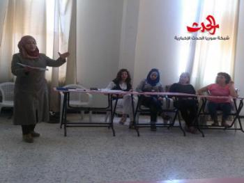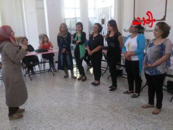 - في إطار التدريب المستمر لمشرفات الرياضة التابعة للإتحاد النسائي أقم فرع الإتحاد بحمص دورة تأهيلية لمدة ثلاثة أيام بما يتعلق بأهمية حصص الرياضة والرسم والموسيقى والدعم النفسي لطفل الروضة وأشارت السيدة تمارى كولكو رئيسة مكتب رعاية الطفولة في فرع حمص للإتحاد النسائي عن أهمية تعليم الطفل عن طريق المحسوسيات وتأمين البيئة الآمنة والمشرفة للطفل .- وتحدثت الآنسة نسرين كول علي عن أهمية تنمية إبداعات الطفل وترك الأطفال يعبروا عن مواهبهم , فيمكن أن يعبر الطفل عن حالته الداخلية بالرسم فكل حالة من حالات الرسم تعبر عن حالة خاصة بداخله وأشارت إلى أهمية الرياضة والموسيقى أيضا .- بدورها ألقت السيدة حسن الاخوان رئيسة فرع حمص للإتحاد النسائي كلمة بدأتها بالترحم على أرواح شهداء سورية والوقوف دقيقة صمت , وتحدثت عن أهمية هذه الدورة وعن الحالة النفسية التي يمر بها الأطفال بسبب هذه الأحداث وتمنت للمعلمات الاستفادة من الدورة وأكدت على أهمية تعليم الأطفال على حب الوطن وحب كل شيء جميل .- وفي اليوم الثاني ألقت الأستاذة سمر سعد الدين محاضرة أما المعلمات عن تعريف مفهوم التدريب الحسي وأهميته لدى أطفال الروضة وامتلاك كفايات تعليمية تعلمية للمعلمات للتدريب على استخدام الأدوات والوسائل اللازمة لتنمية الإدراك الحسي للأطفال في الرياض , والتعرف على الأنشطة التي تنمي الحواس ( اللمس – البصر – الذوق – الشم – السمع ) والمهارات الحياتية والمهارات الحركية - يشار أخيرا أن الأستاذة سمر سعد الدين تشغل رئيس دائرة المناهج في مديرية التربية مكتب حمص والمنطقة الوسطى أندريه كليم ديب