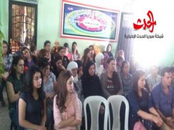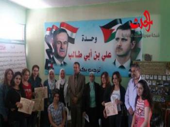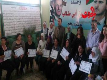 بمناسبة اعياد تشرين وتحت رعاية الاتحاد النسائي العام فرع حمص , أقامت رابطة تشرين – وحدة الزهراء ندوة عن اهمية التوعية ومحو الامية حيث تم تخريج دورة محو الأمية ودورات تأهيلية .هذا والتقت سورية الحدث مع السيدة حسن الأخوان رئيسة المكتب الإداري في فرع حمص للإتحاد النسائي ووجهت شكرها لمدرسة علي بن أبي طالب لإستضافة هذه الدورات وأكدت على دور المراة السورية بالبناء وباركت للخريجات من دورة محو الأمية والدورات التأهيلية .- كما اكدت السيدة هزار الدقس عضو مجلس الشعب السوري , أكدت بكلمتها ضرورة التعلم وان الفكر التكفيري لا يواجه إلا بالكلمة الصادقة - كما تحدث السيد مسلم حداد ريس دائرة تعليم الكبار في مديرية الثقافة عن دور المراة في البناء والتطور في المجتمع السوري - حضر هذه الندوة السيدة حسن الاخوان رئيسة المكتب الإداري في فرع حمص للإتحاد النسائي و السيدة نجوى سموني رئيسة المكتب الإعلامي والتنمية في الإتحاد النسائي والسيد مسلم حداد و السيدة سوسن الحصني رئيسة الرابطة والسيدة آمال سليمان رئيسة وحدة حي المهاجرين والسيدة ملكة نصرة رئيسة وحدة الزهراء - وتم في نهاية الندوة توزيع الشهادات وتوزيع سلل غذائية من قبل الإتحاد النسائي للخريجات من الدورة تشجيعا لهم ولغيرهم مكتب حمص والمنطقة الوسطى اندريه ديب – ريم نور الدين علي