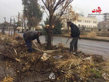 الحدث – حلب – فارس نجيب آغا رغم العطلة الرسمية التي أقرتها الدولة بمناسبة عيد الفصح المجيد إلا أن مجلس مدينة حلب كان له رأي آخر معتبراً أن خدمة المواطن أبدى وأهم وخاصة في ظل الأوضاع الحالية التي تمر بها المحافظة بعد عودتها كاملةً لحض الوطن حيث يتوجب على جميع المؤسسات العمل دون هوادة في ظل واقع يحتاج الى نهضة تشمل كافة النواحي الخدمة بغية عودة المواطنين الى منازلهم وتنظيف الطرقات والأحياء من كافة مظاهر الخراب .( الحدث ) كعادتها جالت في جزء من الأحياء وإطلعت على واقع العمل حيث رافقنا عضو المكتب التنفيذي في مجلس مدينة حلب الأستاذ محمد نواي و رئيس دائرة التنفيذ والصيانة في مديرية المدينة القديمة والأستاذ عبد الناصر زيتون رئيس شعبة الحدائق في قطاع السليمانية .الجولة انطلقت من دوار بستان الزهرة إمتداداً الى طريق بستان القصر وسوق الهال وفرع المرور بعد عملية ترحيل الأنقاض وإزالة السواتر الترابية التي وضعتها العصابات المسلحة فضلاً عن فتح الطرقات مع عملية كسح وتنظيف وإعادة تعشيب لبعض الحدائق في تلك المناطق بمشاركة مع الإنشاءات العسكرية متع ( 2 ) .ثم تابعنا عملية تنظيف محيط القلعة وأحياء البياضة ، باب الحديد ، باب النصر ، القصر العدلي , ويمكن القول أن وتيرة العمل متسارعة كما أكد لنا المسؤولين خلال الجولة وعدم منح العاملين أي عطلة في ظل واقع خدمي يفرض على جميع مؤسسات الدولة العمل دون توقف لتلبية حاجة المواطن وتذليل العوائق التي تواجهه بغية إنتعاش المدينة وعودتها الى الحياة .