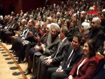 حفل تكريم لجرحى الجيش السوري في دار الأوبرا بحضور مستشارة السيد الرئيس الدكتورة بثينة شعبان ومفتي الجمهورية أحمد بدر الدين حسون ووزير السياحة بشر يازجي ووزيرة الشؤون الاجتماعية والعمل ريما قادري .