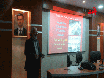 ألقى الأستاذ حسن م يوسف محاضرته في جامعة البعث بحضور عدد من الصحفيين والمهتمين والمتابعين وكان لسورية الحدث حضورها والتقت مع الأستاذ حسن م يوسف وعن محاضرته يقول :الموضوع متجدد بعنوان صحافة المواطن حيث صحافة المواطن بدأت ب 2001 مع أحداث أيلول حيث لجأ الناس للبريد الإلكتروني ووسائل التواصل الإجتماعي والموضوع متطور يوميا ونحن في المنطقة العربية تحول الموضوع ضدنا حيث استحدمه الغرب ضدنا , حيث الذي جرى استخدمت صحافة المواطن استخدم بشكل اجرامي فمثلا ال بي بي سي كانت تستخدم صورا مهزوزة من خلال الموبيل .وعن دور الإعلام الوطني يقول كان إعلامنا الوطني هو خاسرتنا الرخوة وبحاجة إلى التطوير والإعلام يحتاج إلى جنود مخلصين قضيتهم هي المصلحة الوطنية وليست الشخصية . مكتب حمص والمنطقة الوسطى أندريه ديب – ياسمين الخشمان