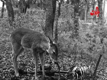 أصيب علماء أمريكيون بالحيرة، بعد أن التقطت كاميراتهم في غابة صورًا لغزال يتغذى على جثة إنسان متحللة.وأظهرت الصور الغزال وهو يضع عظمة إنسان في فمه ويقضمها، بينما يقف أمام الجثة في الغابة في ولاية تكساس الأمريكية، والتي يُعتقد أنها ظلت هناك لنحو 180 يومًا.وأشار علماء الطب الشرعي، في تقرير نشر في مجلة العلوم الأمريكية، إلى أن هذه هي المرة الأولى التي يتم فيها مشاهدة غزال وهو يتغذى على جثة إنسان.وقال التقرير:”كانت هناك مشاهدات كثيرة لحيوان الراكون والديك الرومي والثعالب والنسور، وهي تتغذى على جثة إنسان، لكن هذه هي المرة الأولى لغزال”.وأضاف:”يبدو أن الغزال كان يقضم العظم، ربما بسبب حاجته للمعادن، ولا يوجد أي دليل بأنه كان يأكل لحم الجثة.. وهذا يعني أن الغزال بحاجة للمعادن خلال الشتاء وخاصة الكالسيوم والصوديوم والفوسفور”.