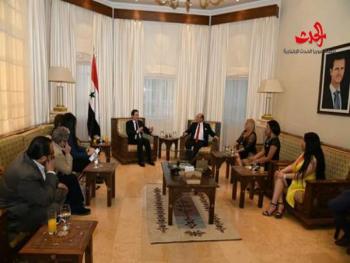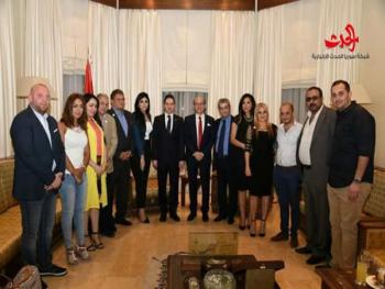 استقبل المهندس بشر يازجي وزير السياحة الفنان المصري محمد صبحي والفنانة ندى بسيوني والمخرج عمر عبد العزيز والمخرج هاني لاشين وعدد من الفنانين والإعلاميين المصريين المحبوبين خلال زيارتهم لسوريا وحضورهم معرض دمشق الدولي حيث بين السيد الوزير أن الدورة ٥٩ للمعرض هي مرحلة لإعادة ألوان سوريا في هذا الوقت الذي تتوجه فيه أنظار العالم نحوها وفي ظل مشاركة شركات من ٤٣ دولة و بدء تعافي كافة القطاعات وبداية مرحلة الإستثمار وإعادة الإعمار من جانبه بين الفنان محمد صبحي أن تلبية الدعوة لحضور المعرض كان واجب إنساني ومشاركة للسوريين نصرهم وفرحهم وعودة الحياة من جديد ، مشيرا الى عظمة وشموخ الشعب السوري والطاقة الإيجابية التي يتمتع بها وحب الحياة والعمل مما يجعلنا نستمد منه القوة لافتا الى أن معرض دمشق الدولي هو إعلان لمعركة البناء وإعادة الإعمار وكما مصر لم ولن تركع سوريا لم ولن تركع والدليل على ذلك نهوضها مجددا وبوقت قياسي.