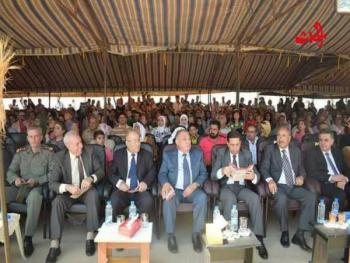 تحت رعاية الأمين القطري المساعد الرفيق هلال الهلال تقيم مديرية التربية بدرعا مهرجان سنابل حوران الخامس تحت شعار "سوريا بيلبقلا الفرح "وذلك في قرية بصير بريف درعا وبحضور ممثل راعي الأحتفال عضو القيادة القطرية ورئيس مكتب التربية والطلائع الرفيق ياسر الشوفي ووزير التربية الرفيق هزوان الوز ونقيب معلمي سوريا الرفيق نايف الطالب وأمين فرع درعا للحزب الرفيق حسين صالح الرفاعي ومحافظ درعا الرفيق محمد خالد الهنوس والرفاق أمين فرع السويداء للحزب ومحافظ السويداء .تضمن المهرجان رسالة موجهة من الجزيرة السورية إلى سنابل حوران وعدد من اللوحات الفنية الراقصة والمسرحية والقصائد الشعرية والتي ساهمت في أدائها عدد من الفرق الفنية من مخافظتي درعا والسويداء.وتحدث محافظ درعا عن تاريخ بلدة بصير بلدة المحبة والالتزام الوطني التي أقيم فيها هذا المهرجان الذي يعد تحد لهؤلاء القتلة التكفيريين من خلال اعادة الفرح والبسمة لوجوه اطفالنا و أهلنابعد حرب دامت سبعة أعوام.وأكد على ضرورة الحوار و تحقيق المصالحات الوطنية لإعادة كل المناطق الخارجة عن السيطرة وعودة ابنائنا لحضن الوطن مشيرا أنه من واجبنا اليوم تأمين كل مقومات الصمود لتحقيق نتائج ايجابية.