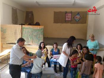 انطلاقا من حرص المنظمات العاملة في مجال الصحة وبالتعاون مع مديرية الصحة نظمت حملة اللقاح ضد مرض الحصبة وكان لسورية الحدث متابعتها حيث التقت مع الدكتور سليمان معروف المحمد رئيس مستوصف الشهيد الملازم أول محمد جهاد رمضان وعن هذه الحملة يقول : بدانا حملة لقاح ضد مرض الحصبة بالتعاون بين الصحة المدرسية ومديرية صحة حمص ومنظمة اليونيسف , وشملت الحملة طلاب المدارس من الصف الأول حتى الصف السادس أساسي , وكان التعاون جيد بين كل المعنيين بالحملة لتحصين الأطفال ضد الحصبة واللقاح آمن ومجاني ومراقب من قبل منظمة الصحة العالمية وتمت الحملة بدون أي اختلاطات تذكر وتجاوزت النسبة 97 % .- كما التقت سورية الحدث مع إدارية الفريق الصحي الأنسة نسرين العلي وتقول : تم اعطاء اللقاح ضد مرض الحصبة وتم التحصين بفيتامين A بأمان لأطفالنا حيث تم تقسيم الفريق إلى 4فرق تلقيح على شكل التالي 4مساعدات صحيات لكل فريق مهمتهم اعطاء حقن اللقاح وادارية واحدة لكل فريق مهمتها توثيق إحصاء وكل ما يخص الخطة التنفيذية لتسهيل سير اللقاح مع تكليف بعض المساعدات والمثقفات لاعطاء فيتامين A في جميع مدارس الحلقة الاولى التابعة لمستوصف الشهيد الملازم اول محمد جهاد رمضان للصحة المدرسية- كما التقت سورية الحدث مع مديرة مدرسة الشهيد نزيه علي الديري ( المتنبي سابقا ) وتقول شكرا من القلب لفريقنا الطبي , فريق مستوصف الشهيد الملازم أول محمد جهاد رمضان بإدارة الدكتور سليمان معروف المحمد .- نشير أخيرا أن حملة التلقيح كانت من 17 ولغاية 28 أيلول مكتب حمص والمنطقة الوسطى أندريه كليم ديب