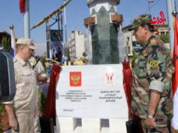 جرى في حلب اليوم تدشين نصب تذكاري لشهداء الجيش العربي السوري والقوات الروسية المشاركة في الحرب على الإرهاب بحضور المحافظ وممثل مركز التنسيق الروسي في حميميم وذلك على دوار التلفون الهوائي بحي السليمانية.وبين رئيس اللجنة الأمنية والعسكرية اللواء زيد صالح بحلب أن النصب التذكاري “يخلد شهداء الجيشين السوري والروسي الذين امتزجت دماؤهم على تراب سورية انطلاقا من الواجب المقدس في الدفاع عن الأرض والحق في مواجهة الإرهاب أينما وجد”.بدوره أشار ممثل مركز التنسيق الروسي في حميميم اللواء ايغور ايميليانوف إلى “أهمية التعاون الروسي السوري في مكافحة الإرهاب ودور ذلك في طرد المجموعات الإرهابية المسلحة وتحرير مساحات كبيرة من الأراضي السورية من الإرهابيين وعودة نحو 500 بلدة ومدينة للحياة الآمنة والتمكن من إيصال آلاف أطنان المساعدات الإنسانية للمحتاجين وكل ذلك كان بتضحيات ودماء الشهداء العسكريين الروس والسوريين والذين نجتمع اليوم لتخليد ذكراهم في هذا النصب التقديري لهم بمدينة حلب”.شارك في الفعالية أمينا فرعي حزب البعث العربي الاشتراكي في حلب وجامعتها ورئيس جامعة حلب وقائد الشرطة وحشد من المواطنين والفعاليات الأهلية في مدينة حلب.