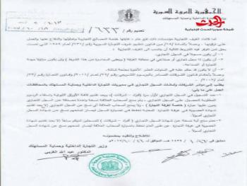 أصدر وزير التجارة الداخلية وحماية المستهلك عبد الله الغربي تعميما حصلت سورية الحدث على نسخة منه تضمن على عدم منح أي تاجر (سجل تجاري) إلا بعد تسجيله في غرف التجارة، الأمر الذي يُلزم التجار بالانتساب إلى غرف التجارة.