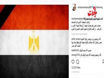 نعى المطرب الفلسطيني محمد عساف شهداء الوطن الذين استشهدوا في حادث تفجير مسجد الروضة ببئر العبد بالعريش. وتقدم عساف، عبر حسابه على "إنستجرام"، بالعزاء للشعب المصري قائلًا "فُجعت مصر الحبيبة بعمل إرهابي استهدف الآمنين في المساجد مصاب مصر هو مصابنا جميعًا الرحمة لشهداء الغدر والإرهاب وأتقدم بالتعازي لعموم الشعب المصري الكريم". كان إرهابيون استهدفوا مسجد الروضة غرب مدينة العريش، أثناء أداء المصلين صلاة الجمعة، وأعلنت رئاسة الجمهورية حالة الحداد لمدة 3 أيام، ووصل عدد شهداء الحادث، إلى 235 شهيدا، وإصابة 109، آخرين وسط حملة إدانات محلية ودولية.