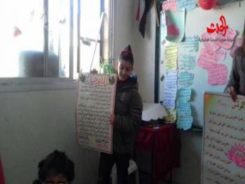 ضمن خطة تنفيذ المشاريع الصحية وبأشراف مباشر من قبل الدكتور عزام حسون النجار رئيس دائرة الصحة المدرسية في مديرية تربية حمص نفذ صباح الخميس الموافق في 14 / 12 / 2017م مشروع منهج صحي في مدرسة يعرب العبدالله ضمن قطاع مستوصف الشهيد الملازم أول محمد جهاد رمضان بعنوان العناية بالنباتات البيئية لطلاب الصف السادس باشراف المعلمة رشى محمد محمد و بحضور الموجهة التربوية فضة المحمود ومديرة المدرسة نهلا درويش وفريق المنهج الصحي المكون من السيدة نسرين العلي والسيدة دارين محمد حيث قدم التلاميذ اناشيد صحية وعمل مسرحي ومجسم لكفية تطعيم الاشجار ولوحات رسوم وتم توزيع برشور صحي لكفية المحافظة على النباتات البيئية حيث تميز المشروع بالتفاعل والتجانس مابين المعلمة والطلاب الذين بحثوا وثابروا مع معلمتهم وبتعاون واضح مع الادارة للوصول لدرجة التمييز والنجاح بالمشروع الذي بدى واضحا للجميع. مكتب حمص والمنطقة الوسطى أندريه كليم ديب