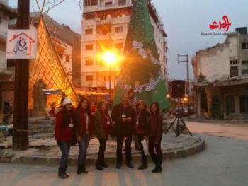قام محافظ حمص الأستاذ طلال البرازي والسيدة عقيلته وبحضور عددا من رجال الدين المسيحي بإضاءة شجرة الميلاد في ساحة الملجأ في حي الحميدية في حمص حيث قام بهذه المبادرة مؤسسة بيتي للتنمية والتقت سورية الحدث مع المديرة التنفيذية لمؤسسة بيتي للتنمية السيدة رولا وتقول نحن نقوم بتجهيز الشجرة منذ 2014 مع كامل الزينة والتجهيزات وهذا العام شهدنا تزايد اعداد الحضور فكلنا بحاجة للفرح , كما قمنا بالتعاون مع جمعية الرجاء , فريق نبع المحبة الذي يعنى بزوي الاحتياجات الخاصة بإقامة معرض للأشغال اليدوية حيث زاره السيد المحافظ واطلع عليه - كما عبر الحضور عن سعادتهم بهذه البادرة متمنين الخير والسلام لكل سورية وان تكون ولادة المسيح رسول المحبة والسلام هي ولادة سورية الجديدة سورية الخير والمحبة والتسامح والسلام مكتب حمص والمنطقة الوسطى أندريه ديب - ماريا حسن