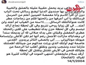 “أطلب لنا الرحمة من عليائك، فنحن في الأرض نقتتل ونُقتل كل لحظة … أرقد بسلام، ما يجعلني أشتهي الموت في أوقات كثيرة هو لقياك (الفاتحة)”. بهذه الكلمات المؤثرة، إختتمت الممثلة السورية شكران مرتجى رسالتها إلى والدها عبد الوهاب مرتجى في ذكرى وفاته الـ14.رسالة أرادت من خلالها مرتجى التعبير عن مدى شوقها وحنينها إلى والدها، لتضيف قائلةً عبر صفحتها الخاصة على أحد مواقع التواصل الإجتماعي:” أحنّ إلى ساعي بريد يحمل حقيبة مليئة بالعشق والخيبة والشوق، وكأني بها صندوق الدنيا، ليضع رسالتي تحت الباب من دون أن أقرأ الاسم، وأنا مغمضة العينين أعلم مَن المرسل، فرسائلك يا أبي أعرفها من رائحتها، فكم من زجاجات عطر كانت عنوانًا لتلك الرسائل…..١٤سنة من الغياب لم أعتد ولن أعتاد… في كل زوايا روحي تتربع، وفي كل لحظة نجاح أراك تبتسم، وفي كل لحظة حزن يدك تطبطب على قلبي .. رائحتك عطري المفضل، وقبلتي على يدك صلاتي لله أن يديمك سندًا لي، وهداياك مازالت الأجمل رغم أنها لم تكن الأغلى، وابتسامة عيونك موناليزتي”.