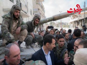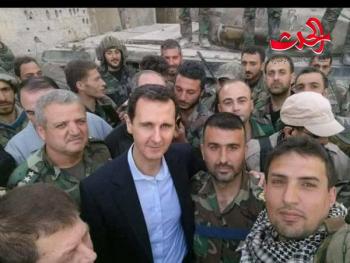 بالصور .. على خطوط النار في الغوطة_الشرقية .. الرئيس الأسد مع أبطال الجيش العربي السوريفاجأ السيد الرئيس بشار حافظ الأسد الجنود العاملين على الخطوط الأمامية في جبهة الغوطة الشرقية بزيارتهم على خطوط النار وهنئا السيد الرئيس الأبطال وشد على سواعدهم واثنا على بطولاتهم واكد أبطال الجيش العربي السوري اصرارهم على اجتثاث عصابات التكفيرية حتى اخر شبر من الوطن وطالبه الابطال بأخذ صورة تذكارية (سيلفي )مع سيادته فلبا طلبهم يكل سرور