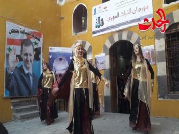 أقامت مديرية السياحة في حمص بالتعاون مع دائرة الآثار وبرنامج الأمم المتحدة الإنمائي مهرجان التراث السوري وذلك في قصر الزهراوي الأثري في حمص القديمة حيث تألقت الأعمال الفنية والحرفية في أروقة قصر الزهراوي الذي يتوسط مدينة حمص القديمة وشارك عددا من الحرفين من طلاب الجامعات الذين تم تدريبهم ضمن برنامج الامم المتحدة الإنمائي والتقت سورية الحدث مع السيدة رنا عمران مديرة حديقة طريق الشام وهي إحدى المشرفين على البرنامج وتقول قمنا بهذا النشاط من أجل إحياء والمحافظة على التراث حيث شارك معنا آخر نحاس وآخر نوال حيث نقوم بدعمهم لإحياء المهنة من جديد ونحن موجودين في حديقة طريق الشام ونقوم بإعادة تدوير للإستفادة من الطبيعة من قش وبحص وأغصان شجر وغير ذلك .- والتقت سورية الحدث مع الحرفية رنا أحمد غميض : وتقول أنا فنانة تشكيلية ومهندسة ديكور وأشارك اليوم بأعمال يدوية من شراشف طاولات وجزادين والعديد من الأعمال اليدوية بالإضافة إلى الفخار وأنا أشارك اليوم لنؤكد ان حمص باقية وعائدة .- بدوره مدير سياحة حمص قال عبر سورية الحدث المهرجان هو المهرجان السوري وهو رأس السنة السورية 6768 ونقول الإنسان السوري باقي وسيبقى رغم كل ما تعرضنا له من مؤامرات لمحو الهوية والتراث السوري .- هذا وتم عرض فني لعدد من الفرق التراثية حيث شاركت فرقة ذكرى برقصة السماح وقالت مديرة الفرقة صدقية الشبعان عبر سورية الحدث بان هذا الرقص يعود بتاريخه لأكثر من 450 عام - كما شاركت فرقة إميسا للمسرح الراقص بقيادة المدربة رنا العبد الله بفقرات غنائية راقصة للأطفال نالت إعجاب الحضور .- هذا وقدم المشارك أحمد الكردي هدية تذكارية لمحافظ حمص الأستاذ طلال البرازي تعبر عن سورية وتاريخها الذي يمتد لآلاف السنين .- حضر افتتاح المعرض والحفل الفني التراثي , محافظ حمص الأستاذ طلال برازي . ورئيس اتحاد غرف سياحة سورية الأستاذ محمد خضور ومدير سياحة حمص المهندس أحمد عكاش والمطران جورج أبو زخم مطران الروم الأرثوذكس والمطران مار سلوانس بطرس النعمة للسريان الأرثوذكس وحشدا من المهتمين . مكتب حمص والمنطقة الوسطى أندريه ديب