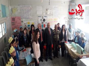 ضمن خطة دائرة الصحة المدرسية في مديرية التربية في حمص افتتح مدير التربية في حمص أحمد الإبراهيم مشروع المنهج الصحي حول مضار التدخين والتي تم إجراؤها لتلاميذ الصف الرابع في مدرسة الاستقلال في حي باب السباع افتتح المشروع بمعرض لرسومات التلاميذ وأعمالهم الفنية التي تبين خطر التدخين وضرورة الابتعاد عنه بإشراف المعلم هشام العنيد والمعلم عبد المعطي خباز والآنسة نسرين العلي ،ومن ثم تم عرض عمل مسرحي عن أضرار التدخين من قبل تلاميذ المدرسة كما تضمن المشروع أناشيد صحية قدمها طلاب الصف الرابع وتكسب التلاميذ مهارات وخبرات صحية سليمة .وأشرف على المشروع المعلمة فريحة العبدالله وقامت بالتدريب والمتابعة مثقفة المنهج نسرين العلي .-هذا والتقت سورية الحدث مع مدير التربية أحمد الإبراهيم حيث عبر عن أهمية هذه المشاريع الصحية وإن العقل السليم في الجسم السليم وإن التدخين له تأثير خطير على المدخن وعلى الآخرين ، وأكد أنه لابد من استخدام التقنيات في التعليم بالشكل الأمثل وإن المنهج الصحي رديف للعملية التربوية لأهميته في توعية التلاميذ حول أهم الأمراض وسبل الوقاية منها وأثنى مدير التربية على عمل المعلمة ومثقفة المنهج الصحي والكادر الإداري والتدريسي في المدرسة .- بدوره نقيب أطباء الأسنان في حمص د. غياث عباس وعبر سورية الحدث بين أهمية المشروع لتغيير السوك إلى الافضل ونقله من المدرسة إلى المنزل والمحيط بشكل عام - أما مديرة المدرسة نوال الشيخ فتوح بينت أهمية المشاريع الصحية وطالبت عبر سورية الحدث بصيانة الحمامات في المدرسة وصيانة الحائط والمدرسة تعاني من نقص في الكادر التدريسي وضغط الطلاب في الصف حيث يصل إلى 47 طالب في الصف , واختتم المشروع بإجراء تحية العلم بحضور مدبر التربية.حضر المشروع نقيب أطباء الأسنان في حمص ومدير مستوصف خالد بن الوليد الدكتور غياث عباس وأمين الفرقة الحزبية الثامنة شعبة التربية موسى سلوم ومثقفة المنهج الصحي نسرين العلي ومشرفة المنطقة الطليعية الرابعة سلام الوعري والموجهة التربوية ابتسام ناصيف . مكتب حمص والمنطقة الوسطى أندريه ديب
