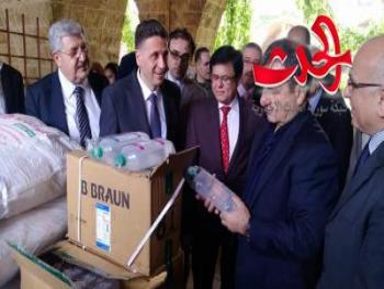 أستلم اليوم محافظ اللاذقية ابراهيم خضر السالم وأمين فرع الحزب د. محمد شريتح وبحضور مختلف قيادات المحافظة ومنظمة الهلال الأحمر هدية الشعب الهندي وحكومته والبالغ قيمتها 3 مليون دولار ومؤلفة من سلة غذائية تتضمن 1400 طن سكر، 300 طن شاي، و500 طن زيت دوار الشمس، و70 ألف طن من المواد الطبية المختلفة. سلمها السفير الهندي في سورية مان موهان بانوت.