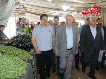 درعا..هيثم العلي زار وزير التجارة الداخلية و حماية المستهلك عبدالله الغربي محافظة درعا اليوم و قام الوزير بجولة اطلع من خلالها على سير العمل في مخبز درعا ومطحنة اليرموك وسوق الخضار بمدينة درعا ومهرجان المؤسسة السورية للتسوق ومخبز ازرع و مخبز الصنمين و صوامع ازرع و صالة المؤسسة السورية للتجارة في مدينة ازرع . و اجتمع مع مدراء الدوائر الحكومية المعنية بالواقع التمويني بالمحافظة بحضور السيد محافظ درعا محمد خالد الهنوس و أمين فرع درعا لحزب البعث العربي الاشتراكي حسين الرفاعي ..