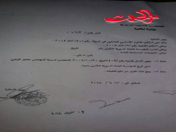سورية الحدث - خاص أصدر وزير المالية الدكتور مأمون حمدان القرار رقم 143 حصلت سورية الحدث على نسخه منه أنهى بموجبه مهمة مدير فرع المؤسسة السورية للتأمين بدرعا جادو الزعبي وتضمن القرار سبب إنهاء المهام بناء على مقتضيات المصلحة العامة .