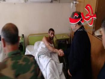 محافظ اللاذقية ابراهيم خضر السالم وأمين فرع الحزب د. محمد شريتح وقائد الشرطة اللواء نبيل الغجري في زيارة محبة ومعايدة لجرحى العمليات الحربية في المشفى العسكري في اللاذقية.. صباح أول أيام عيد الفطر السعيد، حيث باركوا لهم تضحياتهم وعظموا عملهم في الزود عن سياج الوطن، داعين لهم بالشفاء العاجل.