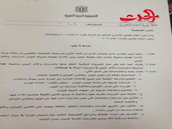 سورية الحدث - خاص أصدر السيد الرئيس بشار الأسد المرسوم رقم /٢٠٦/حصلت سورية الحدث على نسخه منه يقضي بتعيين السيد حسن جنيدان معاونا لوزير الإدارة المحلية .أسرة سورية الحدث تبارك للأستاذ حسن جنيدان مهامه الجديدة متمنين له التوفيق والنجاح في خدمة الوطن والمواطن .