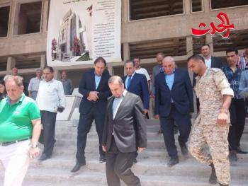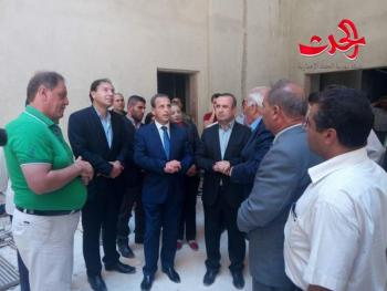 درعا..هيثم علي تفقد وزيرا الإدارة المحلية ووزير الصحة وبحضور السيد محافظ درعا محمد خالد الهنوس والرفيق حسين الرفاعي امين فرع درعا لحزب البعث العربي الاشتراكي مركز الإقامة المؤقت في بلدة جباب بريف درعا الشمالي وبناء محافظة درعا الجديد الذي يتم بناءه حاليا حيث تم الانتهاء من عدد من الطوابق في البناء وتم زيارة مشروع إرواء مدينة درعا من آبار خربة غزالة و مشفى درعا الوطني ومعبر نصيب الحدودي. واطلع السادة الوزراء خلال الجولة على أوضاع العائلات المقيمة والمهجرة بالمركز و استمعا إلى احتياجاتهم مؤكدين تأمين متطلباتهم و مستلزماتهم خلال إقامتهم بالمركز لحين عودتهم لمنازلهم وبلداتهم التي هجروا منها نتيجة الإرهاب الذي طال بلداتهم والتي تم تحريرها من الإرهاب بالإضافة إلى العمل لإعادة مؤسسات الدولة إليها وتامين احتياجات الأهالي من الطحين و المحروقات و الغاز في كافة قرى و بلدات المحافظة الآمنة حررتها وحدات الجيش ودخلت المصالحات.رافقهم بالجولة عضو مجلس الشعب المهندس رياض شتيوي.