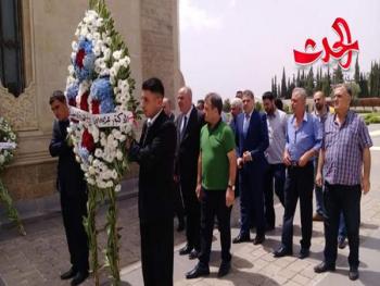 اللاذقية ؛السيد وزير التجارة الداخلية وحماية المستهلك د. عبد الله الغربي ومحافظ اللاذقية ابراهيم خضر السالم وقيادات في المحافظة وكوادر الاسرة التموينية. في حضرة مقام القائد الخالد المؤسس حافظ الاسد، صباح اليوم، حيث تمت تلاوة الفاتحة على روحه الطاهرة ووضعت أكاليل الزهور.،، ،،،الصحفي هيثم مارتيني،،،