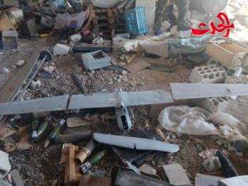 درعا ..هيثم علي عثرت وحدات الجيش العربي السوري اليوم في بلدة عابدين على عدة طائرات استطلاع إسرائيلية مسيرة داخل مستودع اسلحة وذخيرة متنوعة من مخلفات تنظيم داعش الارهابي ومايسمى جيش خالد بن الوليد كان يستعملها تنظيم داعش بعملياته ومراقبة منطقة حوض اليرموك.