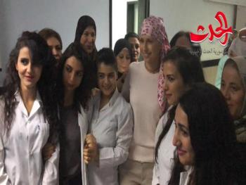 التقت السيدة أسماء الأسد عددا من السيدات اللواتي جئن لإجراء الفحوصات ضمن حملة سرطان الثدي في مركز المشفى العسكري 601 الذي تتلقى فيه سيادتها العلاج خلال توجهها لجلسة اليوم.