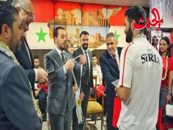 بمقر سفارة الجمهورية العربية السورية في دولة الامارات العربية المتحدة وبحضور القائم بالاعمال الاستاذ ماهر بدور ورجل الأعمال مهند المصري رئيس مجلس إدارة مجموعة دامسكو، تم تكريم بعثة المنتخب السوري لكرة القدم المشارك في نهائيات كأس الأمم الآسيوية التي تستضيفها دولة الإمارات اعتبارا من 6 من الشهر الجاري.وحضر التكريم الأستاذ فادي دباس رئيس اتحاد كرة القدم السوري، وكامل أعضاء الطاقمين الإداري الفني للمنتخب السوري ولاعبي المنتخب الـ 23.وفي أجواء احتفالية تموجت بين التحدي ورفع سقف الطموح تحدث الاستاذ ماهر بدور بكلمات تشجيعية خاطب بها أعضاء وفد بلاده فأشار إلى أن تكريم المنتخب واجب وطني معبرا عن ثقته باقتحام الفريق الوطني لكل الحدود التي يمكن أن يرسمها من ينظر لظروف سورية الحالية ولا يعرف شيئا عن الإرادة السورية.وأضاف بدور:" طموحنا كبير وثقتنا أكبر، ومنتخبنا لعب دورا كبيرا في تعزيز اللحمة الوطنية في تصفيات كأس العالم الماضية عندما وصل لأدوار نهائية وكان قريبا من الوصول للمونديال.ووعد سعادته بمتابعة كل شؤون الفريق السوري طوال تواجده في النهائيات الآسيوية معتبرا نفسه أحد مشجعي المنتخب في البطولة.في حين قال رجل الأعمال مهند فايز المصري مدير مجلس إدارة مجموعة دامسكو إن تكريم المنتخب هو مشاركة في عمل يخص كل السوريين، واعدا باستمرار الحضور والمتابعة في الداخل السوري وأي مكان آخر في العالم.وقال: كرة القدم السورية والرياضة عموما جزء من المجتمع السوري الذي نتطلع جميعنا إلى إعادة الألق له.وشدد على أن التكريم ليس إلا بداية لقادمات تندرج ضمن واجبات كل سوري في كل مكان في العالم.وتلعب سورية في النهائيات في المجموعة الثانية إلى جانب فلسطين والأردن وأستراليا وتواجه في المباراة الأولى فلسطين في السادس من يناير الجاري.