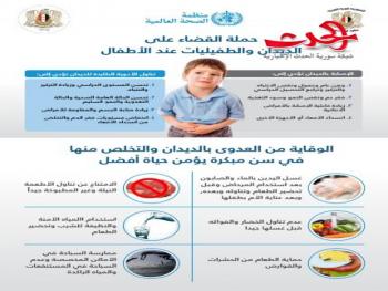 تبدأ غداً /24/ من الشهر الجاري حملة مكافحة الديدان الطفيلية التيأطلقتها وزارة التربية بالتعاون مع منظمة الصحة العالمية، ووزارة الصحة،وتشمل طلاب التعليم الأساسي الحلقة الأولى في المحافظات جميعها، إلى جانبالحلقة الثانية في بعض المحافظات، و سيتم توزيع المستحضر الدوائيMependazole 5oo mg جرعة وحيدة من قبل دوائر الصحة المدرسية على كافةالتلاميذ .وأوضحت الدكتورة هتون طواشي مديرة الصحة المدرسية في الوزارة أن مديريةالصحة المدرسية أقامت دورة تدريبية لأطباء الصحة المدرسية في ١٤ محافظةحول الوقاية من الديدان الطفيلية وغيرها من الأمراض السارية والمعدية،والأمراض المنتقلة بالماء والغذاء والهواء والحشرات، والتي يمكن ان تنتشربالمدارس.وأضافت: يواكب توزيع المستحضر الدوائي حملة تثقيفية توعوية حول أهميةمكافحة هذه الأمراض الطفيلية والوقاية منها، والمحافظة على بيئة مدرسيةصحية وآمنة، والتركيز على النظافة الشخصية، والعامة، والطريقة الصحيحةلغسيل اليدين .المكتب الصحفي في وزارة التربية