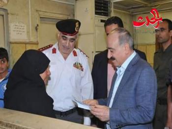 قام السيد اللواء محمد الرحمون وزير الداخلية بجولة تفقدية على فرعي الهجرة والجوازات في دمشق وريفها برفقة قائد شرطة محافظة دمشق ومدير إدارة الهجرة والجوازات، اطلع خلالها على آلية العمل فيهما والتسهيلات المقدمة للإخوة المواطنين في استخراج الجوازات ووثائق السفر من خلال إحداث كوة للمصرف التجاري ضمن مبنى الفرعين ونافذة للأحوال المدنية من أجل تخفيف العبء عنهم.والتقى بعض المراجعين من المواطنين السوريين والإخوة العرب، واستمع إلى ملاحظاتهم، مؤكداً على ضرورة رفع مستوى الخدمات المقدمة لهم، وحسن التعامل معهم، واستقبالهم بالشكل اللائق واحترامهم، والإسراع في انجاز معاملاتهم، وإيجاد أفضل السبل لتقديم التسهيلات والخدمات لهم بأسرع وقت ممكن، وتأمين التجهيزات الالكترونية التي تسهم في تحسين جودة هذه الخدمات.وفي نهاية الجولة اجتمع بكادر العمل وأثنى على جهودهم ، مشدداً على متابعة عمل العناصر وعدم السماح للسماسرة والمعقبين بالإساءة للإخوة المواطنين، والارتقاء بالعمل نحو الأفضل.
