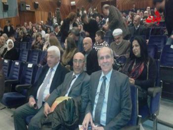 خاص سورية الحدث.إعداد وحوار : لينا ابراهيم _ حمصتحت رعاية وزير الثقافة محمد الأحمد تم افتتاح مهرجان حمص الثقافي على مسرح دار الثقافة بحمص في مساء أمس وسط حضور جماهيري مميز، وحضر الحفل محافظ حمص طلال البرازي و الرفيق إياد ظفور عضو قيادي في حزب البعث العربي الاشتراكي رئيس مكتب الإعداد والإعلام . تم الافتتاح بالوقوف دقيقة صمت على أرواح شهداء الوطن الأبرار ثم النشيد العربي السوري .وعرض فيلم تعريفي عن تاريخ حمص ومثقفي حمص من أدباء وشعراء وفنانين . محافظ حمص طلال البرازي أكد في كلمة له إلى أن مشاركتنا في هذا الاحتفال يأتي مواكبة للانتصارات التي حققها الجيش العربي السوري تحية لهم ولأرواح شهداءنا الذين بفضلهم انتصرنا وتحية إلى جرحانا .وبدوره أكد صمود أهالي حمص في المدينة و الريف الذين قهروا الإرهاب وفي الوقت الذي نعزف فيه موسيقى الحب والغناء والطرب والعطاء بدوره يعزف الجيش العربي السوري لحن النصر على أزيز الرصاص في أرض الميدان .المستهدف من الحرب في سورية هو ثقافة سورية ونحن نؤكد كشعب وحكومة وقيادة بأن هذه الحرب يجب أن تكون لصالح الشعب السوري فهنا نصنع النصر بالثقافة والحضارة وسورية ستنتصر تحية لقواتنا المسلحة وتحية وفاء لقائد الوطن ونحن على العهد والوعد . وأشار وزير الثقافة السيد محمد الأحمد في كلمة له للحضور: بعد التفجير الآثم الذي ضرب حي عكرمة منذ عدة أيام وجه إلي أحدهم سؤال هل مازلتم مصرين على إقامة مهرجان حمص الثقافي ؟إلا تخافون من استهدافكم واستهداف الجمهور القادم للمهرجان ؟ أجابته :لا بل أصبح لدينا حافزاً إضافياً لإقامة هذا المهرجان ونعمل على أن يتميز بأبهى حلة .مدينة حمص مدينة نبيلة عريقة بتاريخها التي أنجبت جوليا دومنا وديك الجن وعبد الحميد الزهراوي وعبد الباسط الصوفي وعبد المعين الملوحي ونادر الأتاسي والكثيرين .وأضاف قائلاً بأنه لا يمكن للإرهابين والارهاب أن يظنوا بأن إرهابهم سيطفأ ضوء الشمس الساطعة وتحطيم النفوس الأبية . أن البعض يرى الثقافة نوع من الترفيه والترويح عن النفس لا بل ننظر لها كما نظر القائد الخالد حافظ الأسد" الثقافة هي الحاجة العليا للبشرية" .تحية لجيشنا الباسل وانتصاراته على الارهاب .و تم تكريم كوكبة من مثقفي حمص ومنهم د. عبد الإله النبهان , محمد بري العوايني , القاص والروائي د. نزيه بدور , الفنانة ليندا بيطار ,والمخرج المسرحي فرحان بلبل و الباحث رضوان قضماني . والمخرج المسرحي سامر أبو ليلى . جريدة سورية الحدث التقت مع أحدى المكرمين الأستاذ محمد بري العوانية الذي عبر عن سعادته وشكر وزير الثقافة ومديرية الثقافة.عملت ما استطعت لمدينة حمص من الموسيقى وفي مجال المسرح وفي مجال ثقافة الأطفال وعملت في تنشيط ثقافة الكبار على كافة المستويات والمجالات .وما يسعدني وجودي هنا مكرما مع أصدقاءي الذين لهم دورا مهما وكبيرا في مجال الثقافة وسعيد بعودة الحياة لحمص لأمنها لسلامها .وعبرت أيضا الفنانة ليندا بيطار لا يوجد شيء أجمل من التكريم وخاصة وإن كان ضمن مدينته .للتكريم نكهة خاصة مع الأهل والأصدقاء وخاصة أن حمص عانت كثيرا وأراها تعود كما كانت .ومن جهة أخرى قدمت فرقة كورال جرحى الجيش العربي السوري _ جرحى الغار حفلاً غنائياً بقيادة أحمد حمودة وإشراف المايسترو ميساك باغودريان . عبرت السيدة فريال عقلية رئيسة جمعية المقعدين وأصدقاءهم في اللاذقية بأن هذه المشاركة مبادرة من جمعية المقعدين وأصدقاءهم ومنسوبيها من جرحى الجيش العربي السوري بإصابات مختلفة هم كانوا أبطال في الحرب وأبطال في الصبر وأبطال في تحمل الألم والآن هم أبطال في الريادة . نحن استوحينا من صبرهم وثباتهم هذا الكورال تأسيسا منهم واستمرينا ثامنة أشهر في التدريب . هؤلاء الجرحى يحملون رسالة بأن الانسان السوري فاعل في كل حين ونستطع أن نكمل الحياة رغم مرارة الحرب .ستبقى سورية منصورة وسنعمرها بهمة المخلصين. والنصر لسورية مكتب حمص والمنطقة الوسطى لينا ابراهيم