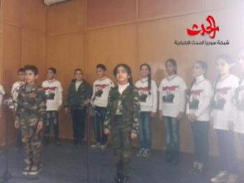ازدان مسرح المركز الثقافي ببلدة القبو في حمص بفرح الطفولة الذي جسدته فعاليات فنية قدمتها عدد من مدارس وروضات المنططقة على مدى يومين بعنوان / ميلاد النصر / ابتهاجا بالنصر المؤزر الذي يحققه الجيش العربي السوري والمتزامن مع أعياد الميلاد المجيدة وبحضور رسمي وشعبي من مختلف القطاعات في المنطقة قدم اطفال مدرسة الشهيد / صالح حسن حسين / من قرية الشنية خلال الفعالية مسرحية بعنوان / عرس النصر / باصوات الطفلين / بتول علي / و/ سليمان محمد محسن / واعداد المشرفة / بيداء العي / وتحكي قصة شاب وشابة سوريين تعاهدا على الدفاع عن الوطن والانخراط في صفوف الجيش العربي السوري دفاعا عنهكما قدم تلاميذ مدرسة الشهيد / اسد سليمان / بإشراف المدرسة / نبيلة العلي / مجموعة من الرقصات على أغاني / حلوة الدنيا / و / بكتب اسمك يابلادي / عبرت عن أمل الطفولة بمستقبل مشرق بالفرح والعطاءفيما شاركت الطالبة / رغد الأحمد / من مدرسة / هاشم منصور / ببلدة القبو بفقرة فنية والطالب / يوسف أحمد / من مدرسة القناقية بأغنية / سورية جنة /وكان لروضة / بكرا أحلى / مشاركة بعدة فقرات فنية ومسرحية نشر الأطفال من خلالها أجواء السعادة في نفوس الحضور حيث قدموا فقرة غنائية بعنوان/ لالي ياعلمنا بالعالي / ولوحة فنية اجتماعية قدمها الطفلان / فاضل مهنا / و / آية حمود/بعنوان / من فضلك ياست البيت / فيما القى الطفل الموهوب / زين محمد محسن/ قصيدة للشهيد وغنى الأطفال الآخرون أغاني وطنية للشاعر الكبير / سليمان العيسى / /هائل الأسعد / مدير المركز الثقافي بالقبو أوضح في حديث لمراسلة سانا أن انتصارات الجيش العربي السوري التي تتزامن مع أفراح عيد الميلاد تستحق أن تكون عرسا وطنيا يشارك في فرحته الأطفال الذين هم شباب المستقبل الواعد وسيذكرون حينذاك كيف سطر أباءهم الذين هم أبناء هذا الجيش أروع ملحمة في الانتصار تضاف إلى الملاحم التاريخية المضيئة بدورها المدرسة /هيفاء العلي / رأت أن ماقدمه الأطفال خلال الفعالية رسم دمعة فرح في عيون الحضور الذين استبشروا خيرا بهذا الجيل الذي سيحمل راية الوطن كما حمل أباؤه فتكتمل فرحة النصر باكتمال فرحة سورية بأعيادها المستمرة حضر الفعالية رئيس المجمع التربوي في القبو ومدير المركز الثقافي في القبو وفعاليات رسمية وشعبية وحزبية وجمهور واسع من أطفال القرى التابعة لبلدة القبو مكتب حمص والمنطقة الوسطى حنان سويد