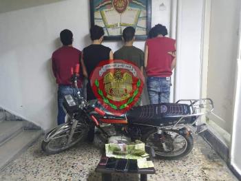 وردت عدة شكاوى مؤخراً حول عمليات كسر أقفال المحلات التجارية والمكاتب ليلاً وسرقة مبالغ مالية تتجاوز ملايين الليرات من أحياء ( القنوات – عرنوس – الحميدية - المرجة) من قبل عصابة يرتدي أفرادها قبعات لإخفاء شخصيتهم والتضليل ونتيجة التحريات وتكثيف الدوريات الليلية تمكن ضباط وعناصر قسم شرطة الحميدية من إلقاء القبض على متزعم هذه العصابة ويدعى (ط . ط) وبرفقته ثلاثة شبان من أفراد هذه العصابة ، وبتدقيق وضعه تبين بأنه مطلوب بجرائم سرقة ومن أرباب السوابق بارتكابها ، وبالتحقيق معه اعترف بإقدامه على سرقة أكثر من تسعة محلات بأحياء مختلفة بمدينة دمشق ليلا بطريقة الكسر وخلع أقفال المحلات والدخول وسرقة محتوياتها من مبالغ مالية تتجاوز الملايين ، وتبين قيامهم بترويج المواد المخدرة وتعاطيها ووجود مقاطع وصور على هاتفهم النقال لجلسات التعاطي ، تم استرداد جزء من الأموال المسروقة وحجز دراجة نارية وهواتف نقالة تم شرائها من الأموال المسروقة ، وقد حضر العديد من المواطنين الذين أكدوا واقعة السرقة وأبدوا ارتياحهم لسرعة القبض على هذه العصابة الإجرامية ، ومازالت التحقيقات جارية مع المقبوض عليهم والأبحاث مستمرة لإلقاء القبض على باقي أفراد العصابة والدلالة على محلات أخرى .